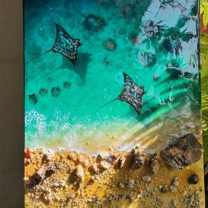 Handmade Epoxy Resin Ocean Scene: Stingrays & Sea Turtle Beach Wall Art